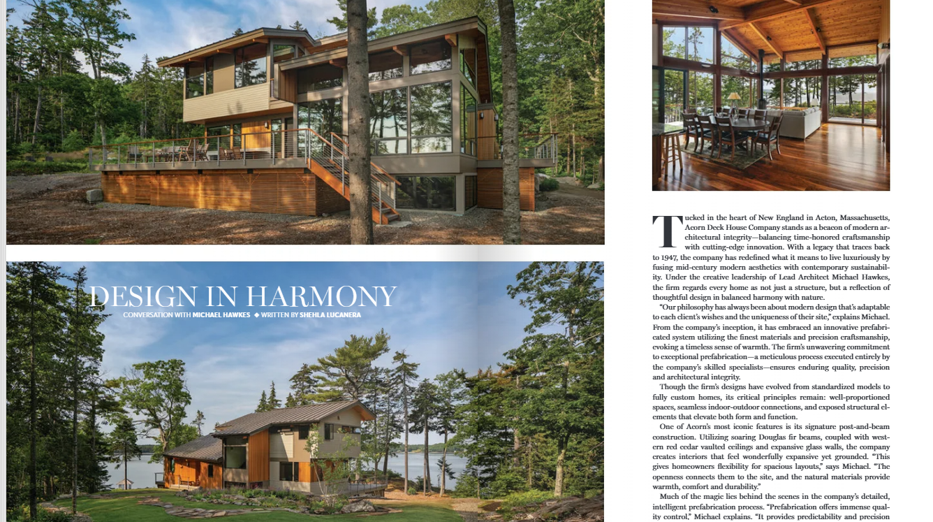 Acorn Deck House Company’s blend of mid-century modern design and sustainable craftsmanship—where thoughtful architecture meets the serenity of nature.